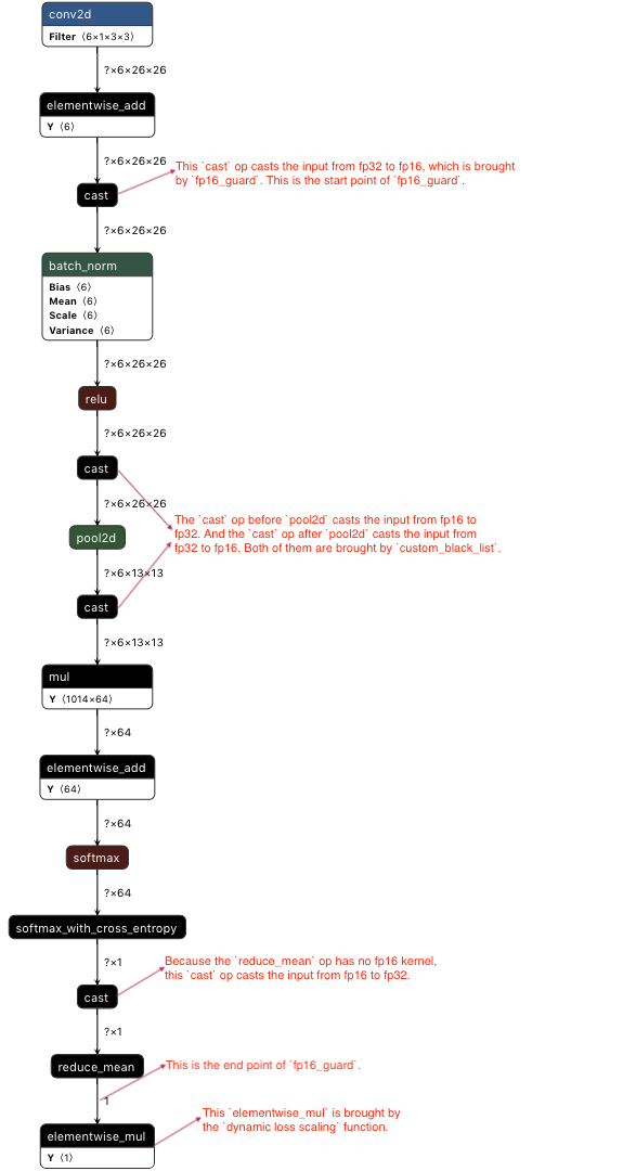 use_pure_fp16is set toTrue, it will use float16 kernels as many as possible. Otherwise, it will adopt the black&white list based strategy.2.2 Description of