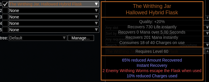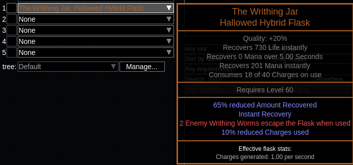 It assumes that the pantheon is active when life flask is not active as simplified condition.
