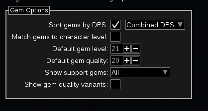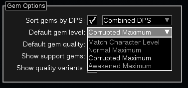 This replaces the old gem level selection and "match gem level to character" level options with a dropdown selection that has four options: