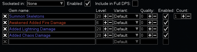 …ge (#4541) * Fix all sources of arcane surge passing also improve passing of other buffs. * Address most requested changes. * clean up some white spaces. * fix non-damaging ailment effect and add types to data. * fix merge mistakes * Switch channelling to time * Squashed commit of the following: commit a449985 Author: Nostrademous <nostrademous@hotmail.com> Date: Sat Aug 13 23:32:53 2022 -0400 Add support for negative levels to gems (#4756) commit fa4aa64 Author: Nostrademous <nostrademous@hotmail.com> Date: Sat Aug 13 23:25:51 2022 -0400 Fix Thrusting swords were not a base subType (#4720) * Fix: Thrusting should be a base subType * Same changes but with less diff Co-authored-by: Wires77 <Wires77@users.noreply.github.com> commit 9eddc38 Author: Tomas Slusny <slusnucky@gmail.com> Date: Sun Aug 14 05:11:25 2022 +0200 Fix crash when deleting the current skill set (#4772) When removing it from table this causes crash when rebuilding skill set dropdown. Closes #4771 Signed-off-by: Tomas Slusny <ts6234@intl.att.com> Signed-off-by: Tomas Slusny <ts6234@intl.att.com> Co-authored-by: Tomas Slusny <ts6234@intl.att.com> commit f8298d7 Author: Lexy <learn2draw@live.nl> Date: Sun Aug 14 04:41:45 2022 +0200 [Kalandra] Update Bitterdream (#4702) * update bitterdream * Remove legacy bitterdream variants commit bc0da55 Author: Paliak <91493239+Paliak@users.noreply.github.com> Date: Sun Aug 14 04:38:17 2022 +0200 FEAT: Add parsing for triple damage mods (#4727) commit 37e8867 Author: Nostrademous <nostrademous@hotmail.com> Date: Sat Aug 13 22:37:51 2022 -0400 [Kalandra] Add support for counting Mastery Type allocations (#4746) * Feat: Add support for counting Mastery Type allocations * added support for on kill portion of ascendancy node * Fix spacing commit f61b17a Author: Nightblade <Nightblade@users.noreply.github.com> Date: Sun Aug 14 12:36:57 2022 +1000 [Kalandra] Update Ngamahu's Sign (#4755) * Update ring.lua Ngamahu's Sign - Perfect (My first one someone check it please!) * remove {variant:1,2,3} not needed commit 14151f8 Author: QuickStick <31533893+QuickStick123@users.noreply.github.com> Date: Sun Aug 14 12:34:18 2022 +1000 [Kalandra] Add new uniques (#4774) * add new uniques * Add new Grand Spectrum Jewels Co-authored-by: LocalIdentity <localidentity2@gmail.com> commit 2dd0cde Author: QuickStick <31533893+QuickStick123@users.noreply.github.com> Date: Sun Aug 14 11:15:06 2022 +1000 Update replica bitterdream(#4775) commit 9b9c49f Author: QuickStick <31533893+QuickStick123@users.noreply.github.com> Date: Sun Aug 14 11:12:56 2022 +1000 Add support for Arrow Dancing (#4779) commit f468faa Author: QuickStick <31533893+QuickStick123@users.noreply.github.com> Date: Sun Aug 14 11:06:59 2022 +1000 [Kalandra] Update batch 4 of uniques. (#4757) * update uniques * added movement on throwing a trap. Co-authored-by: LocalIdentity <localidentity2@gmail.com> commit 54d1740 Author: QuickStick <31533893+QuickStick123@users.noreply.github.com> Date: Sun Aug 14 10:57:50 2022 +1000 Update sources of longer obtainable uniques (#4748) * No longer obtainable * Cameria's Avarice now obtainable from vendor recipe. commit 0961142 Author: QuickStick <31533893+QuickStick123@users.noreply.github.com> Date: Sun Aug 14 10:54:36 2022 +1000 update uniques (#4754) commit 3052165 Author: QuickStick <31533893+QuickStick123@users.noreply.github.com> Date: Sun Aug 14 10:49:46 2022 +1000 [Kalandra] Update batch 2 of uniques. (#4751) * set2 update uniques. * Fix bug with wording. * Change to use PercentStat Co-authored-by: LocalIdentity <localidentity2@gmail.com> commit fe51e95 Author: QuickStick <31533893+QuickStick123@users.noreply.github.com> Date: Sun Aug 14 10:43:59 2022 +1000 Update Manastorm and Kongming's Stratagem to new bases (#4783) commit 456c70d Author: LocalIdentity <localidentity2@gmail.com> Date: Sun Aug 14 10:25:33 2022 +1000 Fix Suppression mastery commit 49dd720 Author: QuickStick <31533893+QuickStick123@users.noreply.github.com> Date: Sun Aug 14 10:20:12 2022 +1000 [Kalandra] Update batch 1 of uniques. (#4747) * update * Update ModParser.lua * Update boots.lua * Update ModParser.lua * support * Remove Covered in Ash mod parsing Co-authored-by: LocalIdentity <localidentity2@gmail.com> commit 54c24b5 Author: QuickStick <31533893+QuickStick123@users.noreply.github.com> Date: Sun Aug 14 09:53:41 2022 +1000 Add support for minions have Unholy Might (#4780) commit c65c194 Author: Lexy <learn2draw@live.nl> Date: Sun Aug 14 01:23:47 2022 +0200 Update brittle values (#4696) commit 6cc2124 Author: Lexy <learn2draw@live.nl> Date: Sat Aug 13 23:14:54 2022 +0200 Update ward recharge speed (#4697) commit dd240b9 Author: Nightblade <Nightblade@users.noreply.github.com> Date: Sat Aug 13 11:58:36 2022 +1000 Update ring.lua (#4773) spelling commit 1fa9ab4 Author: LocalIdentity <localidentity2@gmail.com> Date: Sat Aug 13 11:18:25 2022 +1000 Compact parsing of weapon types for multistrike commit c1903af Author: Sinured <100538010+Sinured@users.noreply.github.com> Date: Sat Aug 13 02:53:33 2022 +0200 Fix: Multistrike damage calculation with skills which have bow and melee Tag (#4740) * wording of blood of karui fixed * undo messy work * damage and atk increase only applies to melee weapons and unarmed * added less attack damage modifier to also apply to bows * adding ModFlag.Attack Condition with bit.bor * Add lines to export files Co-authored-by: Sinured <githubmm@use.startmail.com> Co-authored-by: LocalIdentity <localidentity2@gmail.com> commit 5d94436 Author: Sinured <100538010+Sinured@users.noreply.github.com> Date: Sat Aug 13 01:51:28 2022 +0200 Fix: Blood of the Karui Life recovered and wording (#4729) * wording of blood of karui fixed * Fix: increased life recovered of current version * changed wording for Blood of the karui and Lavianga's Spirit * fixed order and wording * Capitalised Flask Effect Co-authored-by: Sinured <githubmm@use.startmail.com> commit e5ddd8e Author: Sinured <100538010+Sinured@users.noreply.github.com>