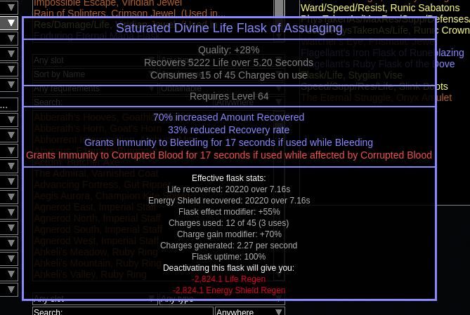 Add support for enduring flask recovery to be displayed as life/es recovery #5897