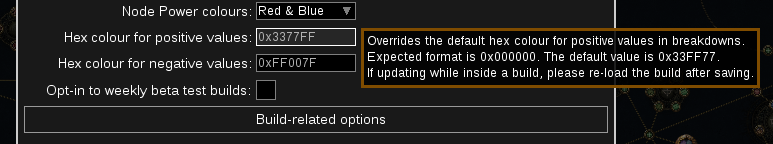 Some support for colorblind users; give users ability to set custom hex colors for positive and negative breakdown values. In the tooltip the default values are displayed so users can always reset. This does not interfere or interact with the node power color options functionality in the Tree tab.