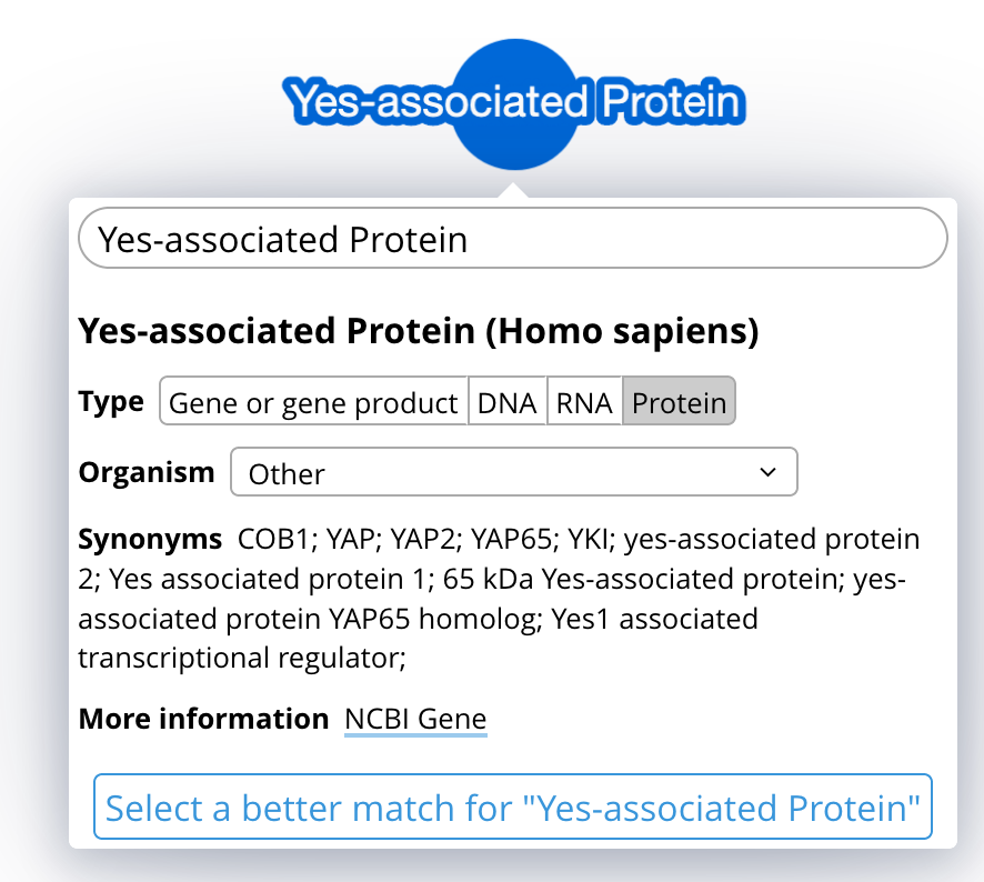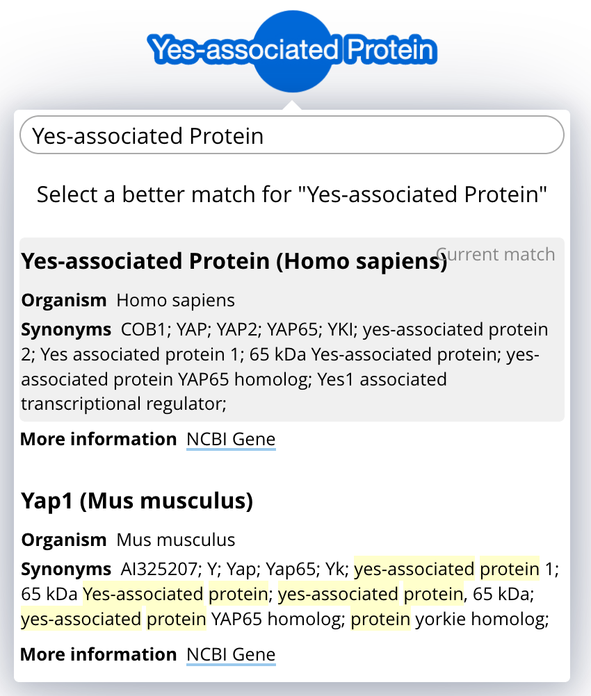 In grounding an entity, I successfully enter the name of a human gene, however the Organism dropdown displays 'Other' or an organism different than the one in the name. I do not believe this is the intended behaviour?