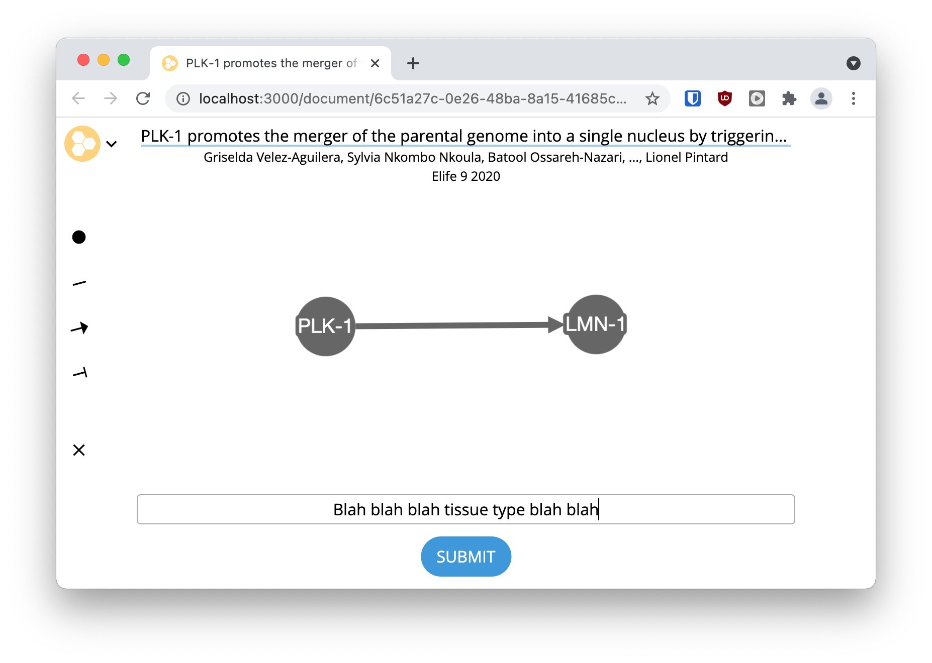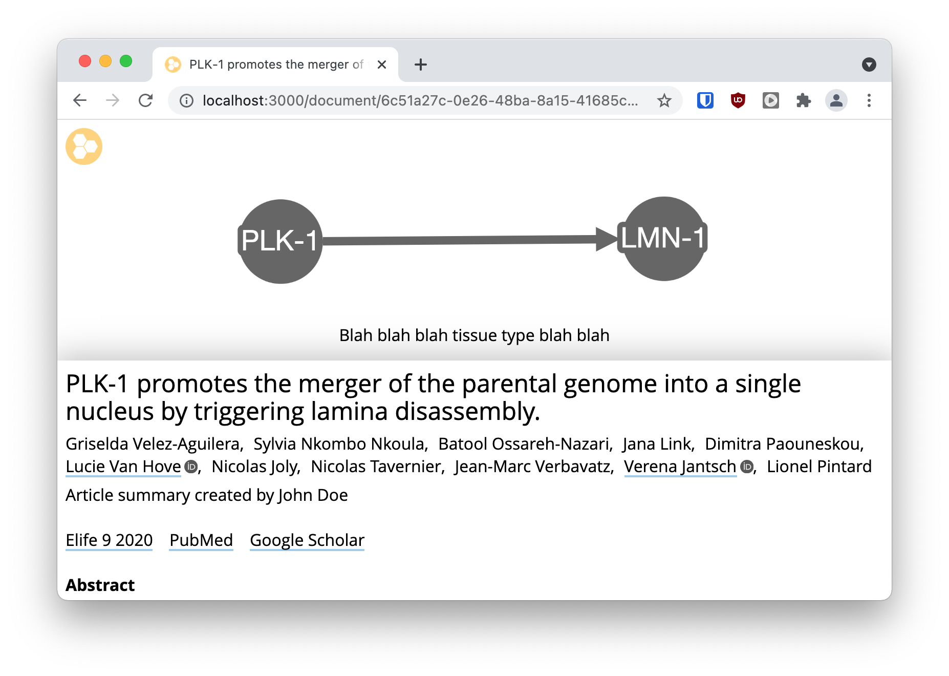 - Changes to existing components were kept to a minimum in order to minimise risk. - The user provides context via free-form text entry into a figure caption text box. - Article summary credits (contributing author) moved to be alongside the title. - New metadata field in the model: `caption`. - Current placeholder text: 'Figure caption (e.g. A phosphorylates B in breast cancer)'. This example may be improved. Ref. : Context #506