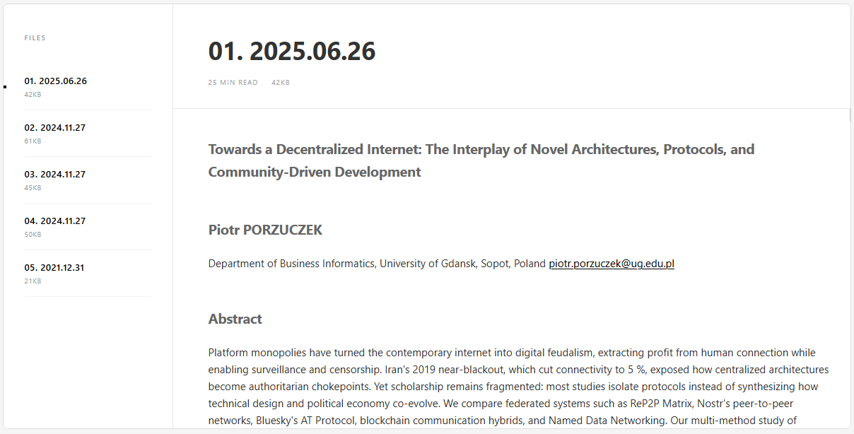 .mdfiles, and renders a selectable list. - On selection or deep link, it fetches and sanitizes the Markdown, then renders it with reading-time and optional metadata (date from a header comment).