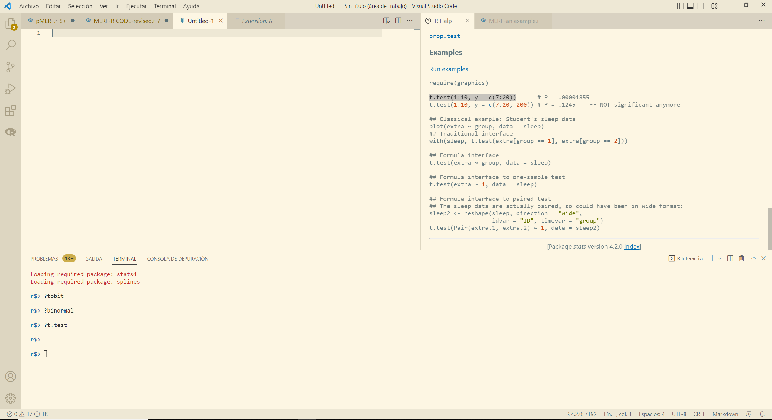 t.test(1:10, y = c(7 : 20)) - Try to paste it in the terminal, in the editor or in any other place.