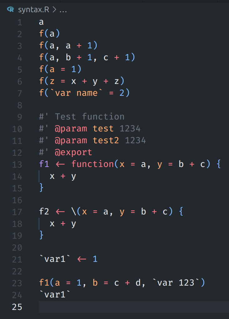 The syntax highlighting of variables and function parameters looks more consistent now.