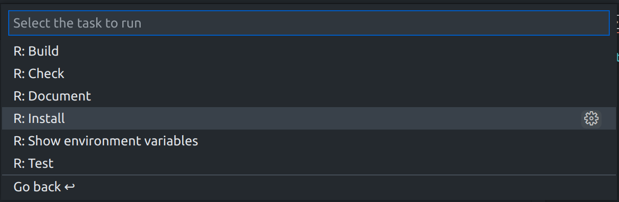 Just my personal opinion/experience: Last time I tried (~1 year ago), the task api was quite confusing to work with and not really flexible. I tried implementing the typical build/test tasks with the possibility to supply optional arguments to e.g. devtools::install(), but this was not supported by the task API. Instead, the extension had to explicitly register all possible combinations of arguments, which is not feasible. Apparently, the idea is to scan a list of tasks specified elsewhere, e.g. package.json, and parse them.
