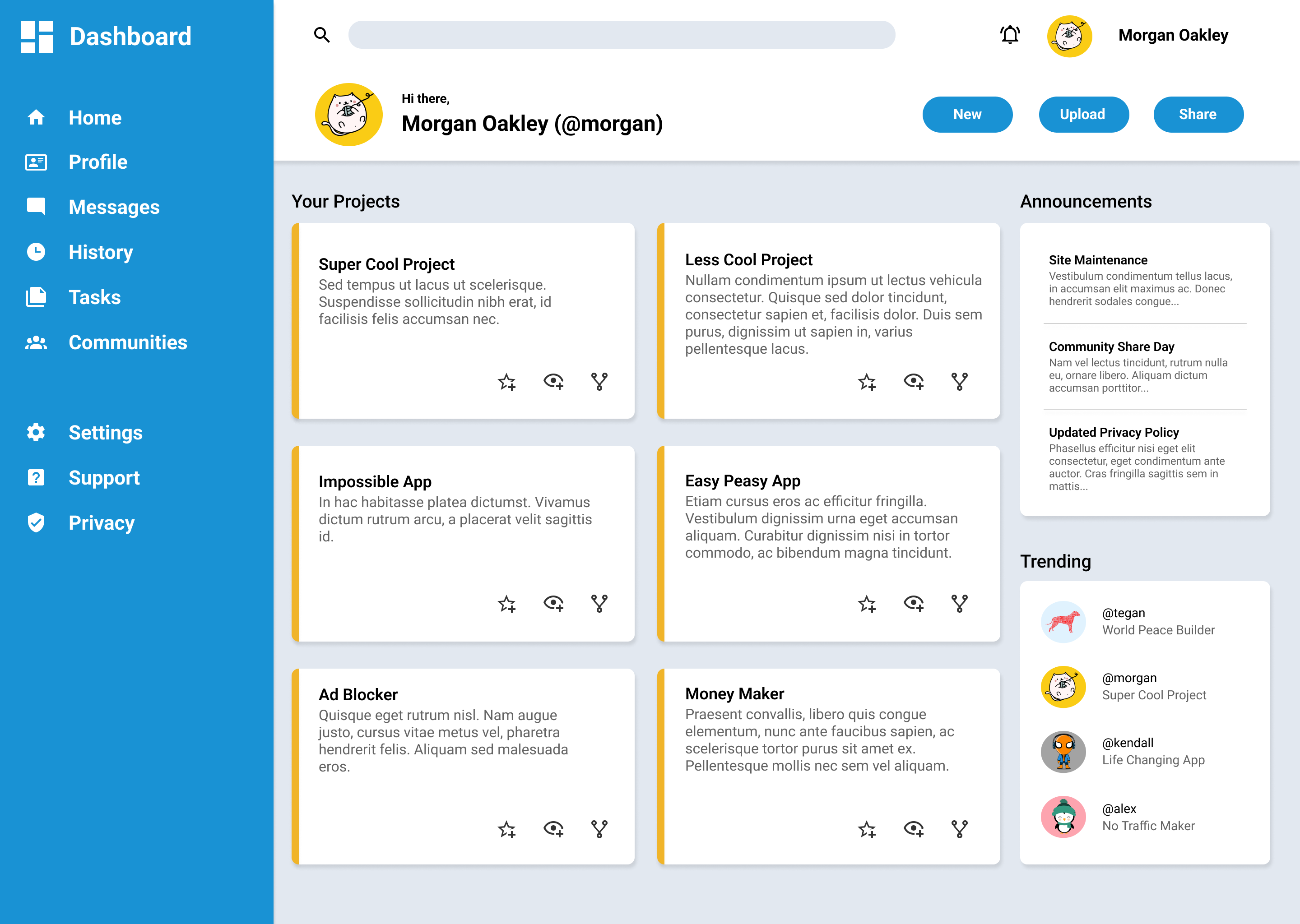Dash board mock-up using responsive CSS grid. Response to loose design-brief.