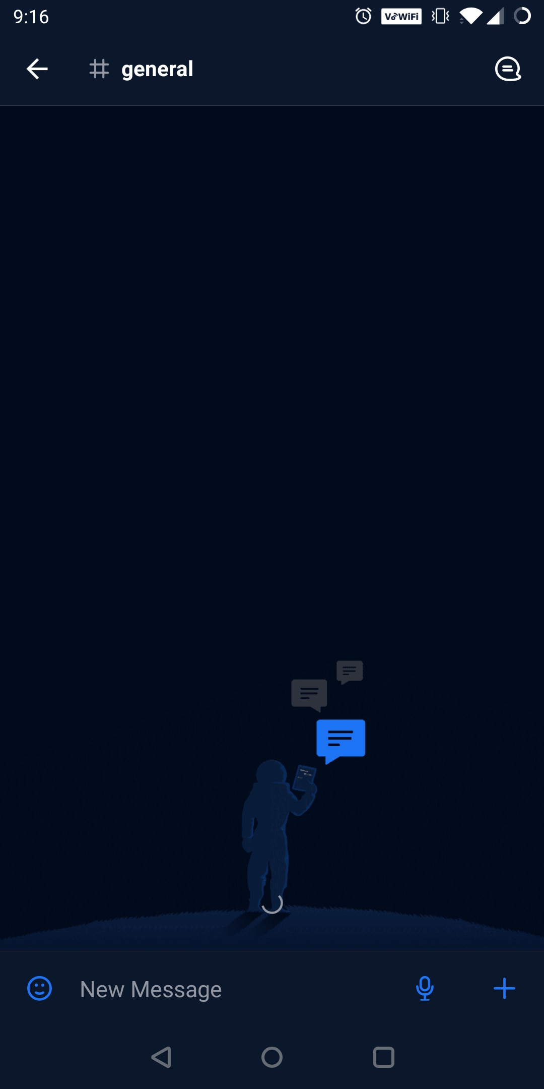 On one of our channels messages stopped updating on the Android client. New messages were coming in, and we could see them from the web client, but on the mobile app the messages weren't showing. I was advised to log out and log in to clear the local database, but now none of the messages will load. It's just stuck on the loading screen: