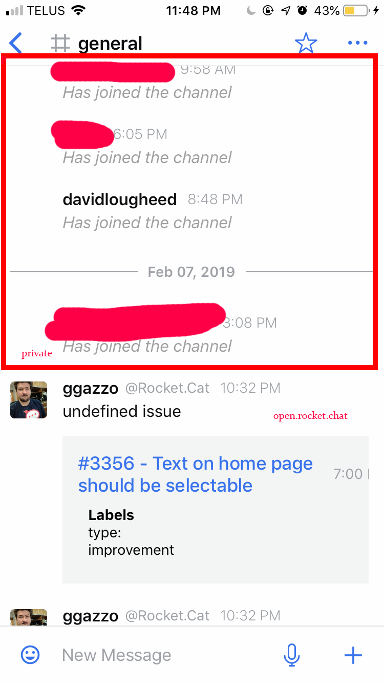I'm in both the open.rocket.chat and a private server. They both have a #general channel, and messages seem to go between the two (so when I'm on the private server, messages appear from open.rocket.chat in the GUI).