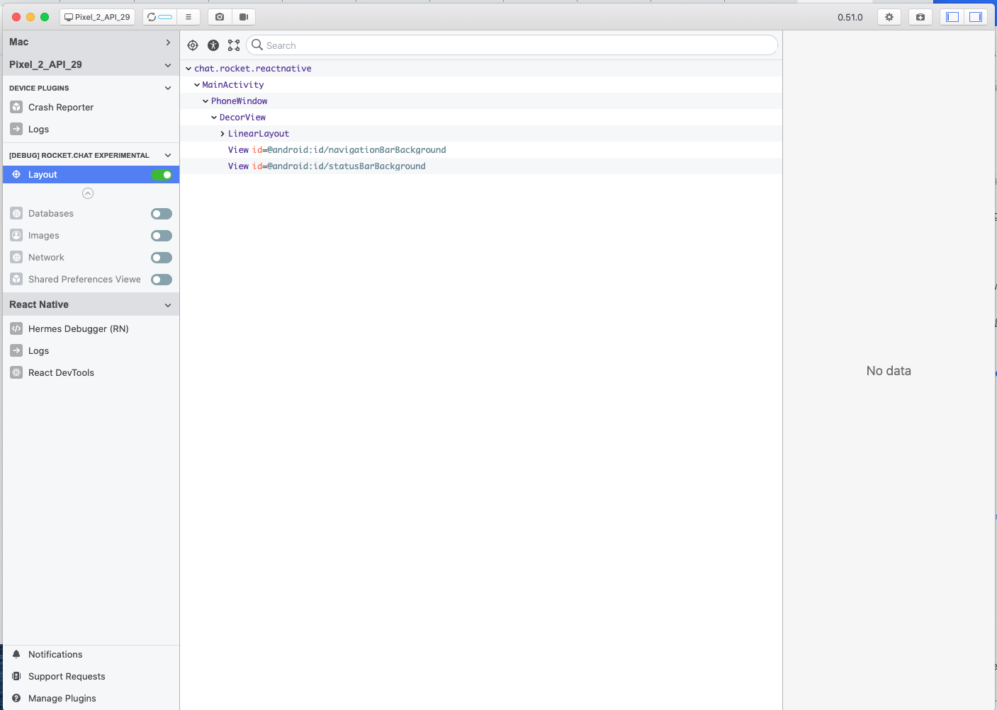 @djorkaeffalexandre @diegolmello - I have double checked everything and ran the Android App with Flipper running (see screenshot). All is working 👍 The confusion was around someone previously copying and pasting some code and not changing the package name. I fixed this in the latest commit. I had to bump Gradle to 6.3 as I run JDK 14 and Gradle will not build on versions before this. In another PR I shall bring Flipper up to date as its a few versions behind. |