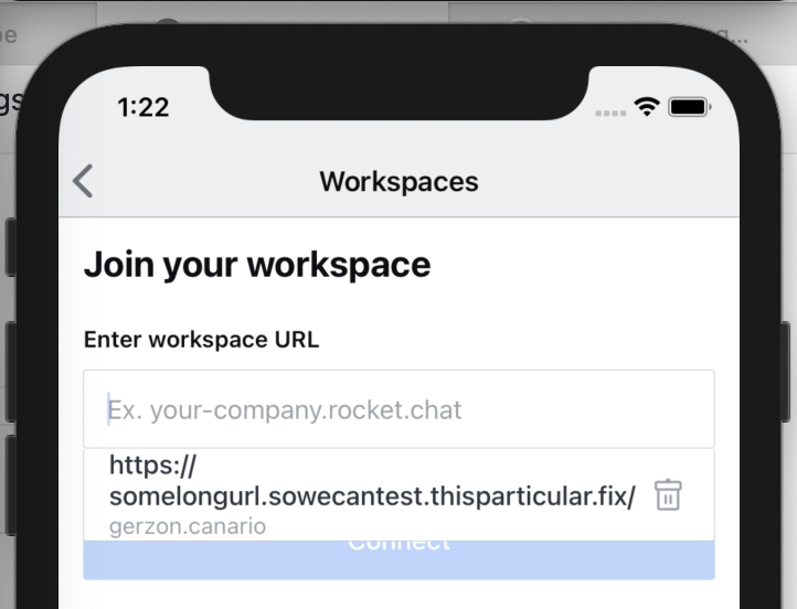 If the usernames or workspace URLs from the FlatList are too long they should render with '...' at the end.