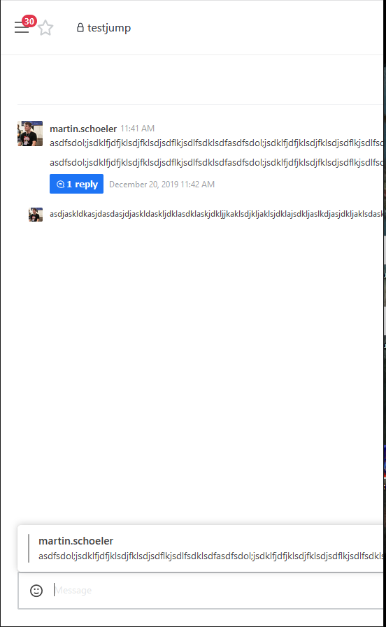 <!-- Please see our guide for opening issues: https://rocket.chat/docs/contributing/reporting-issues If you have questions or are looking for help/support please see: https://rocket.chat/docs/getting-support If you are experiencing a bug please search our issues to be sure it is not already present: https://github.com/RocketChat/Rocket.Chat/issues --> ### Steps to reproduce: 1. Write a Huge message 3. Reply the huge message ### Expected behavior: It should not break the screen ### Actual behavior:  ### Server Setup Information: - Version of Rocket.Chat Server: Tested on open server