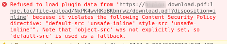 res.setHeader('Content-Disposition', `${ req.query.disposition }; filename*=UTF-8''${ encodeURIComponent(file.name) }`);And why need to remove the Content-Security-Policy?