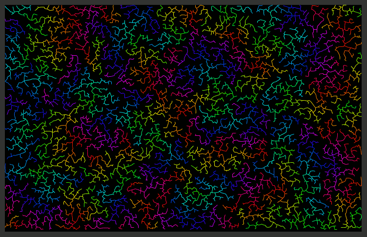 Builds a (minimal?) spanning tree from a set of random points on a 2D plane.