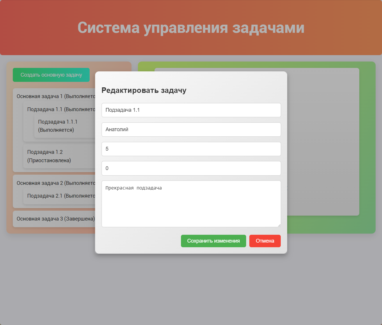 - FR005: Управление статусами задач с учетом их подзадач.
