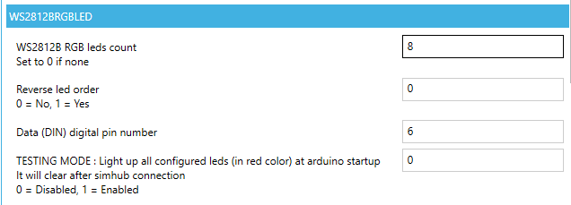 Simhub only offers one WS2812B output on the arduino. Leds can come in various form factors and can be wired together (single leds, 8x strand, circle ...)
