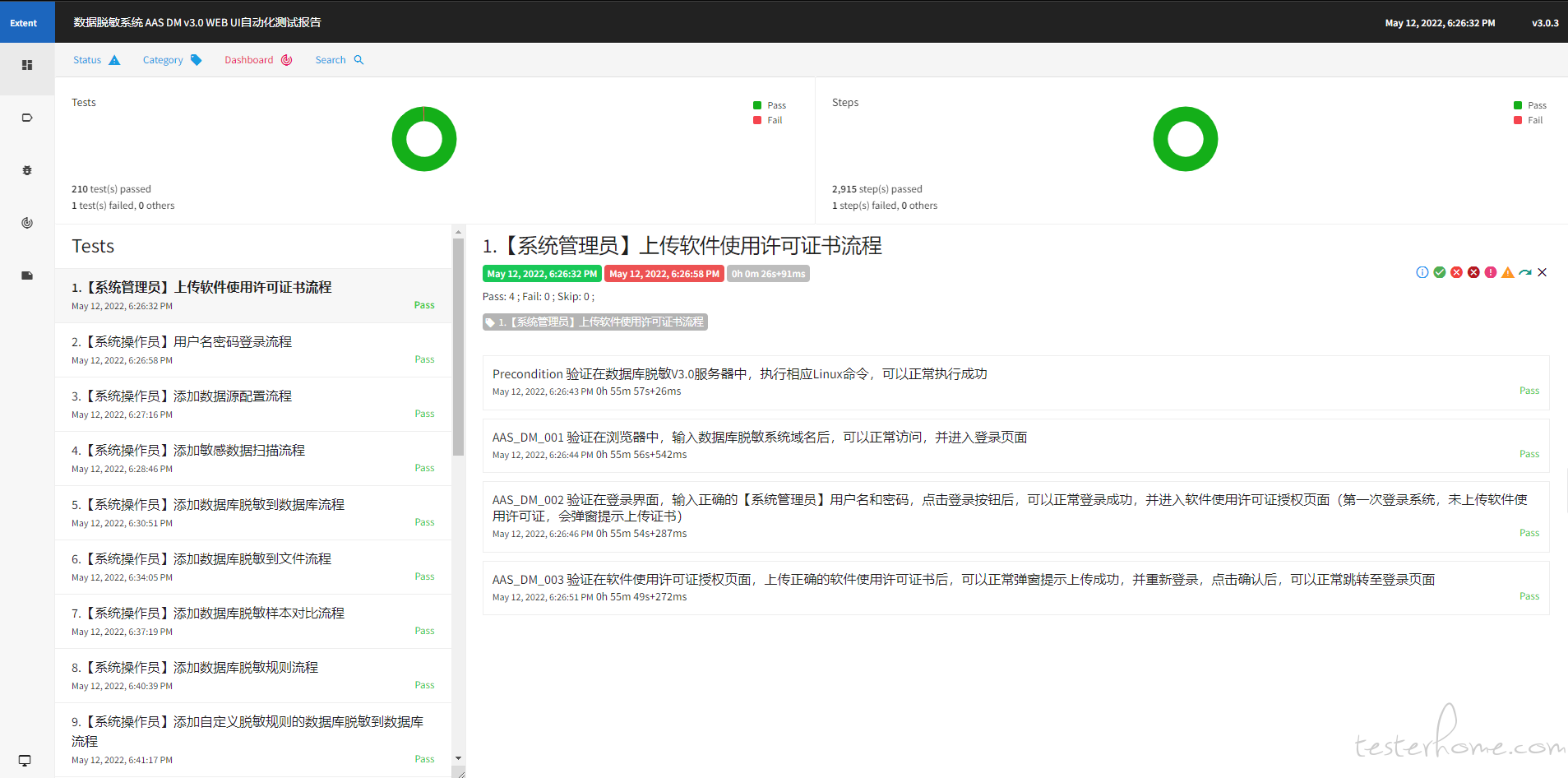 10. 实现了基于ExtentReports,TestNG生成的测试报告二次美化功能,界面更美观,内容清晰
