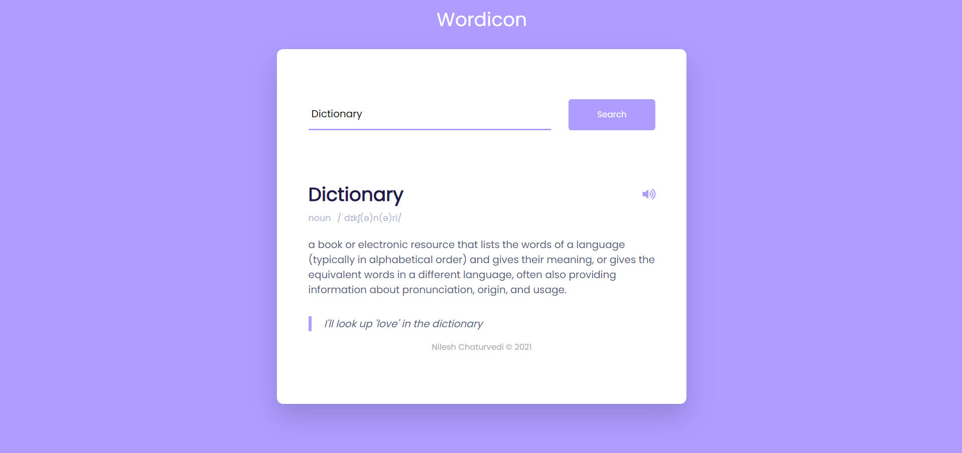 Wordicon is your free online English dictionary and thesaurus with synonyms, related words, and search. Audio pronunciations are available without the use of any separate app. You can find definitions, antonyms, synonyms, and more in a simple and efficient manner.