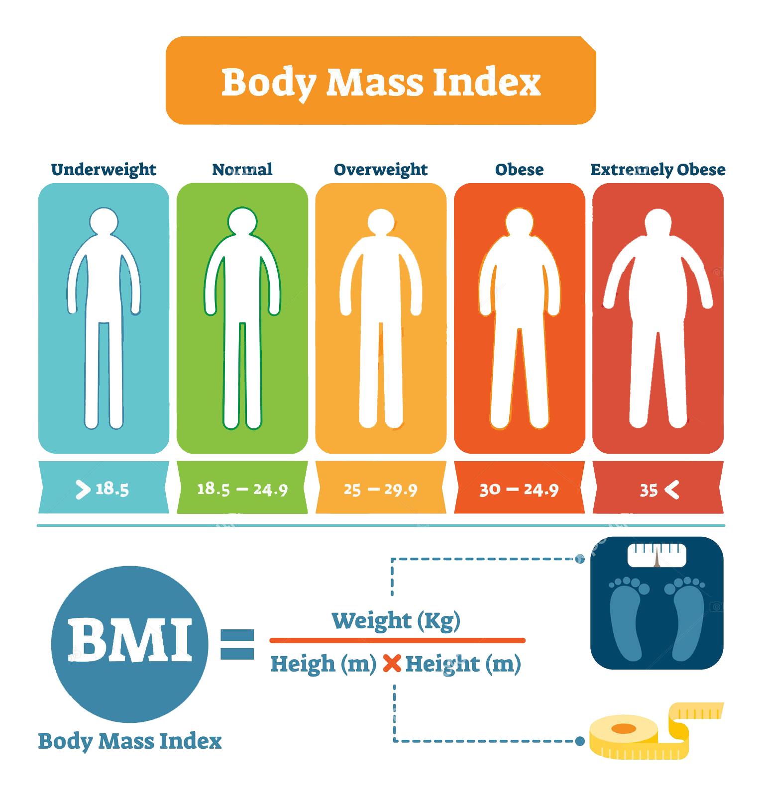 ۴- برنامه ای بنویسید که با دریافت وزن و قد فرد، شاخص BMI را برای آن فرد محاسبه نماید، و با توجه به مقادیر موجود در شکل زیر، در مورد چاق یا لاغر بودن فرد پیام مناسب چاپ نماید.