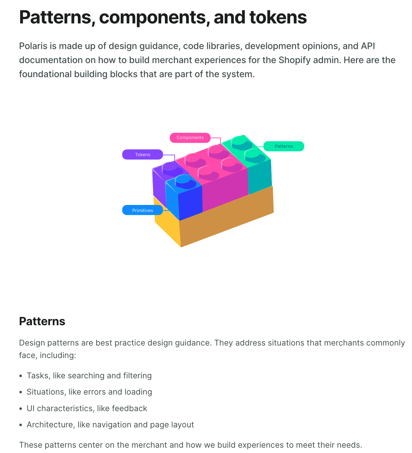 polaris.shopify.com/content/getting-started/patterns-components-and-tokens/index.md