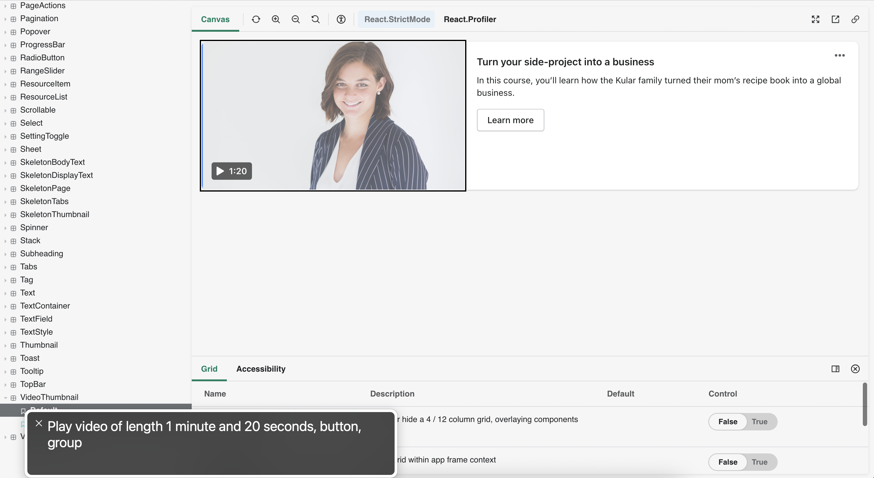 Visual update to the VideoThumbnail play button redesigned by the Admin Quality Crew team
