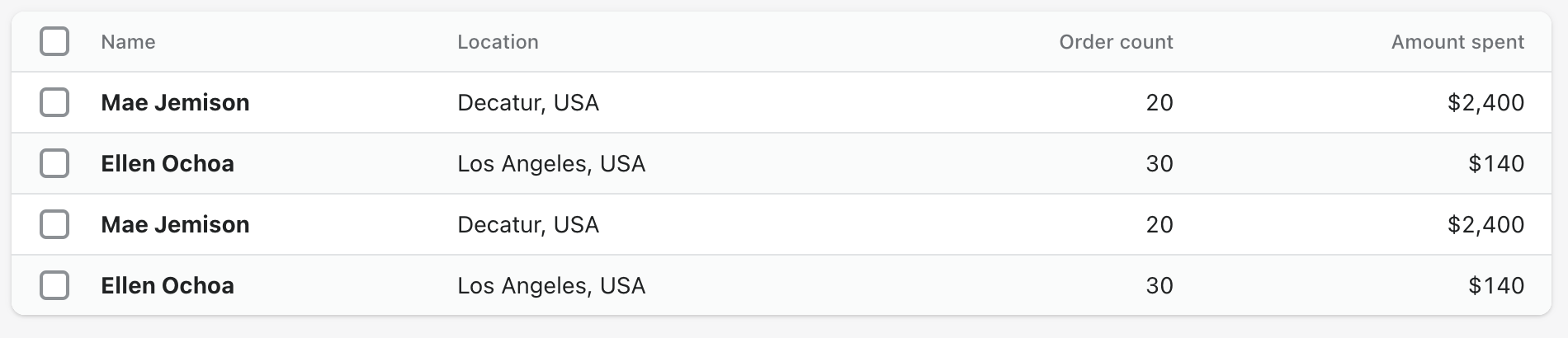 hasZebraStripingoptional prop on IndexTable.🎩 checklist
