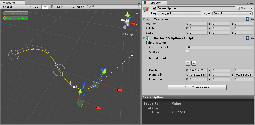 Core bezier implementation for Unity3D. Contains basic bezier functionality with distance interpolation and orientation anchors.