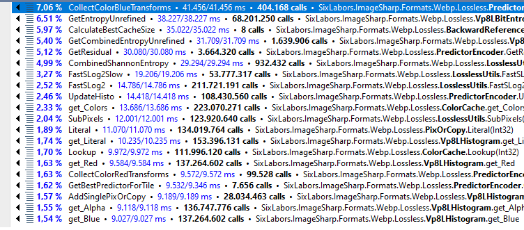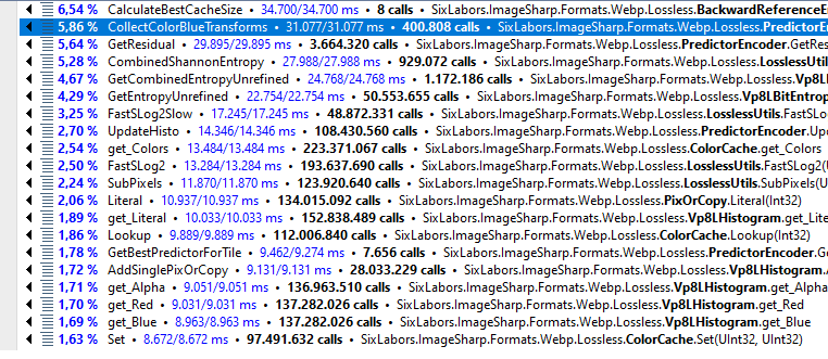 - There are still 2 failing tests.Fixed by @JimBobSquarePants with 55f04f6Profiling results with test image: