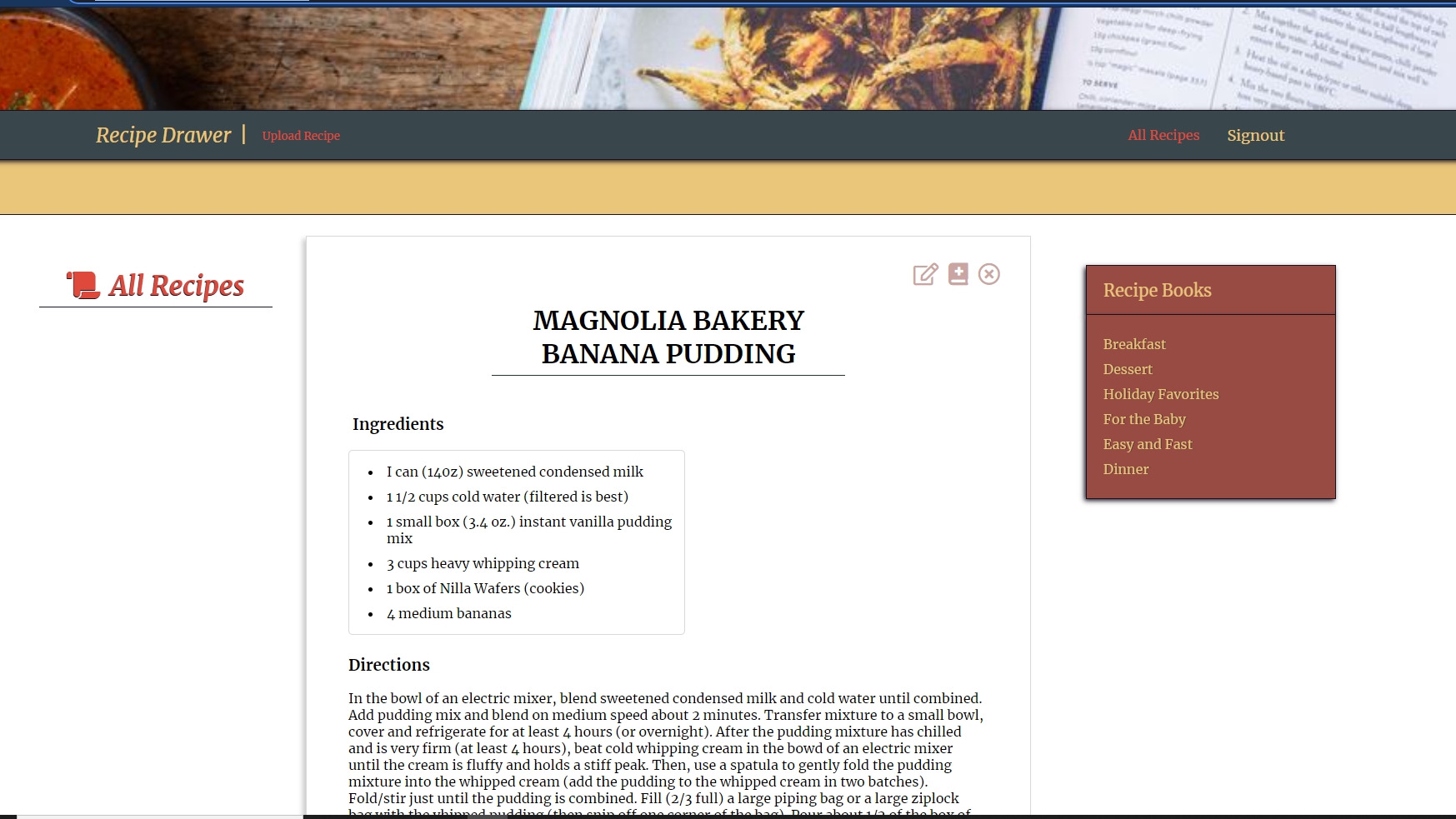 All the users recipes will be collectied in a single location where they can edit, delete, or move the recipe into a new location called a book