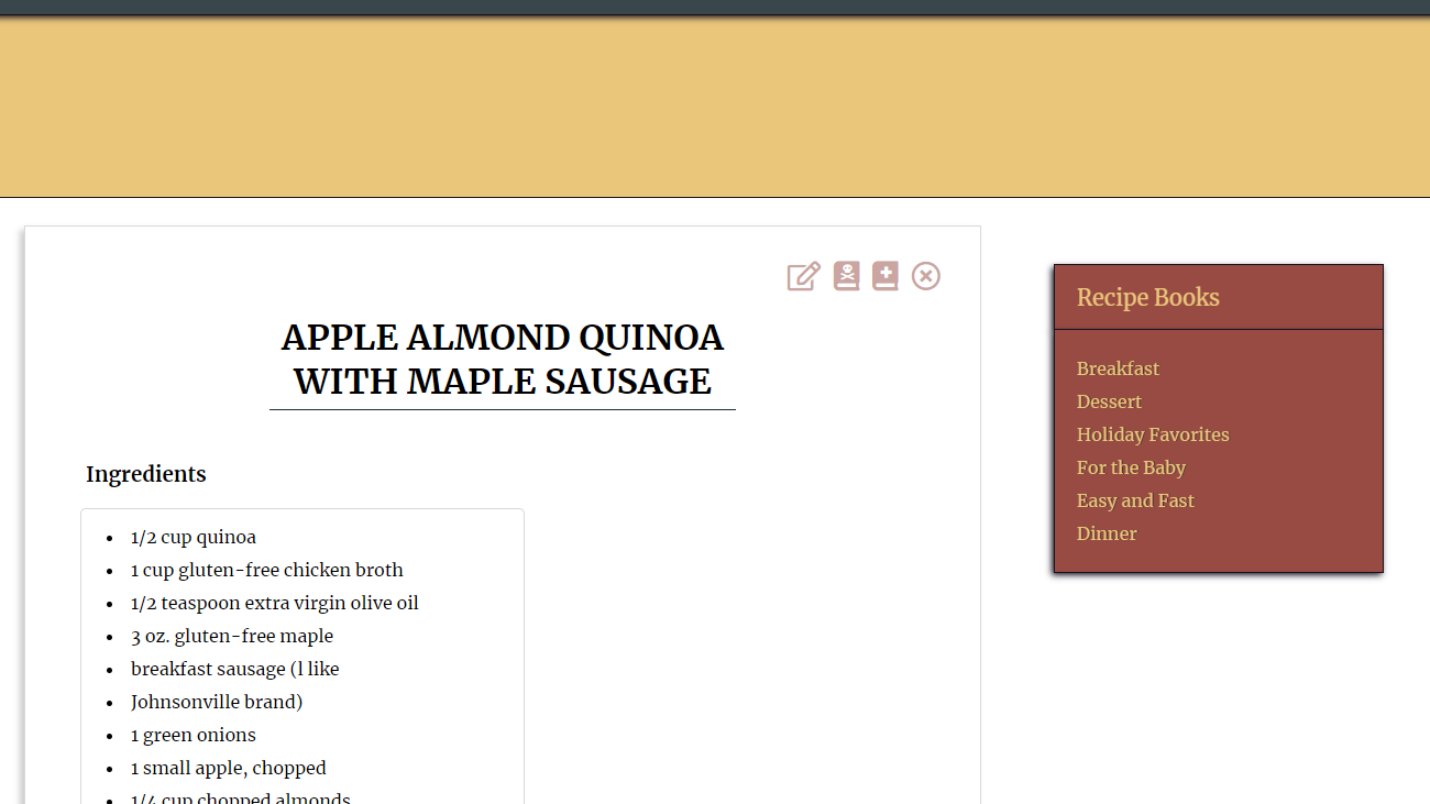 A User can create a "Book" where they can place recipes therein. Here a user also has access to create, delete, or remove the recipe form the book