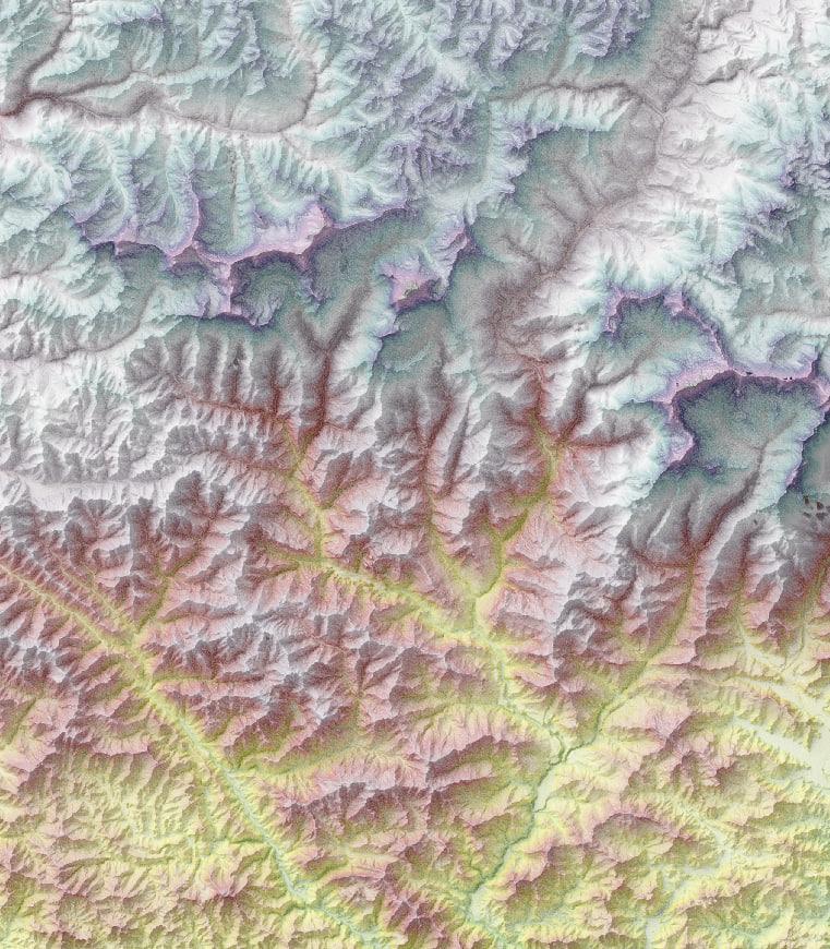 This hillshading method is really sensible to missing or bad data, because they look like dark, deep holes.
