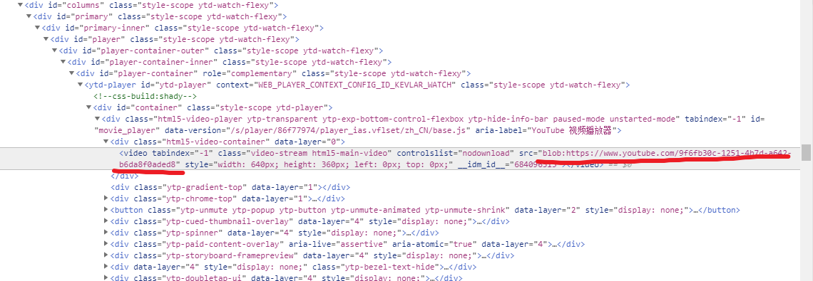 这blob:https看起来很像一种协议,经过一番百度发现:blob:https并不是一种协议,而是html5中blob对象在赋给video标签后生成的一串标记,blob对象对象包含的数据,浏览器内部会解析。**果然,在网页原文