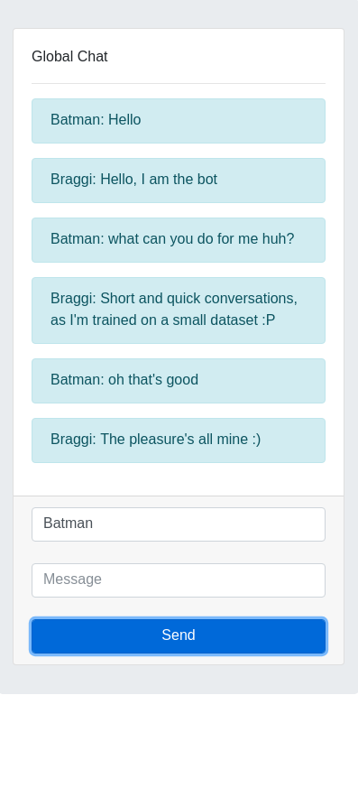 Braggi is a Python based Contextual Chatbot Framework, which hopes to integrate all the necessities for a great chatbot framework, to satisfy both enterprise and general audiences alike. Development still underway, more features on the way π