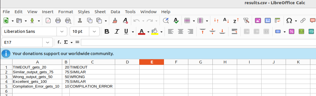 ./a.out gradingTest/conf.txtThe result are shown in the results.csv file created by the program.