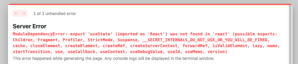 Attempted import error: 'useState' is not exported from 'react' (imported as 'React').