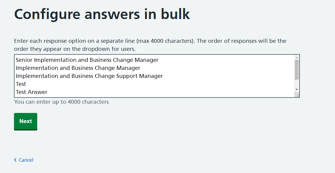 Changed 'Add' to 'Edit' for the bulk buttons/text. Removed empty lines on save and added a max character count hint to the text area view component.