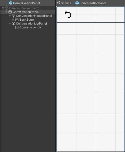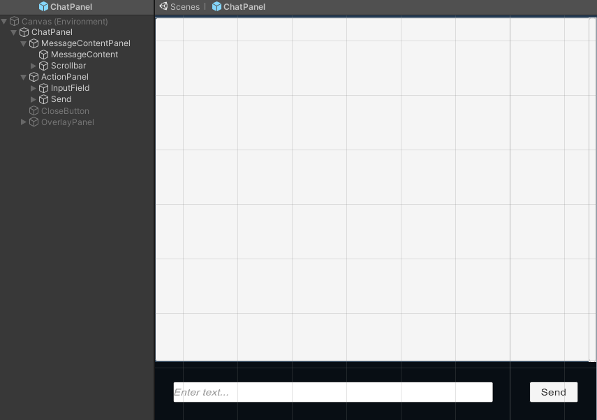 在场景内引用预制件 ChatPanel 和 ConversationPanel 并调整相应 layout