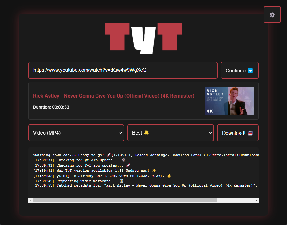 TyT is a program I built with Electron, designed for all of you. It's powered by the mighty yt-dlp.exe tool.