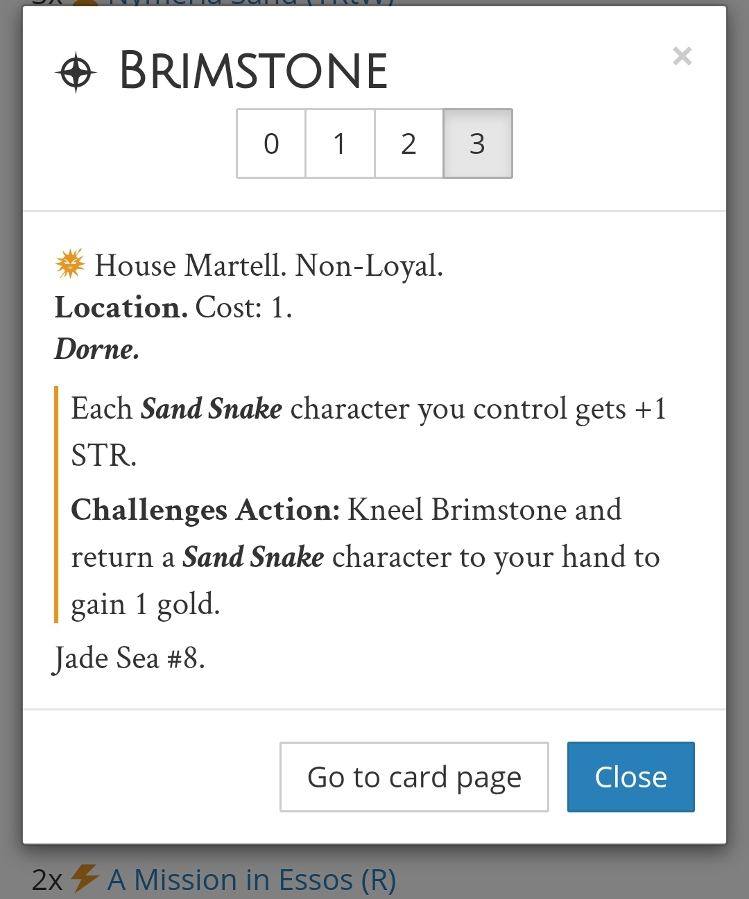 The cost for Brimstone within the deck editor has a gold value of 1 when it should be 2. The gold value of Brimstone on the card page is correct, issue only found in editor.