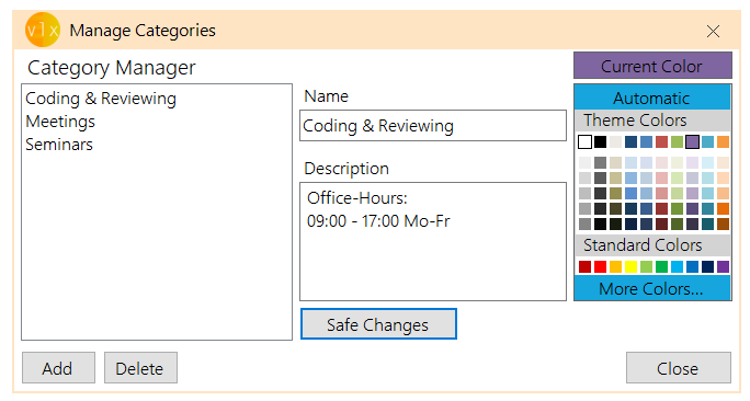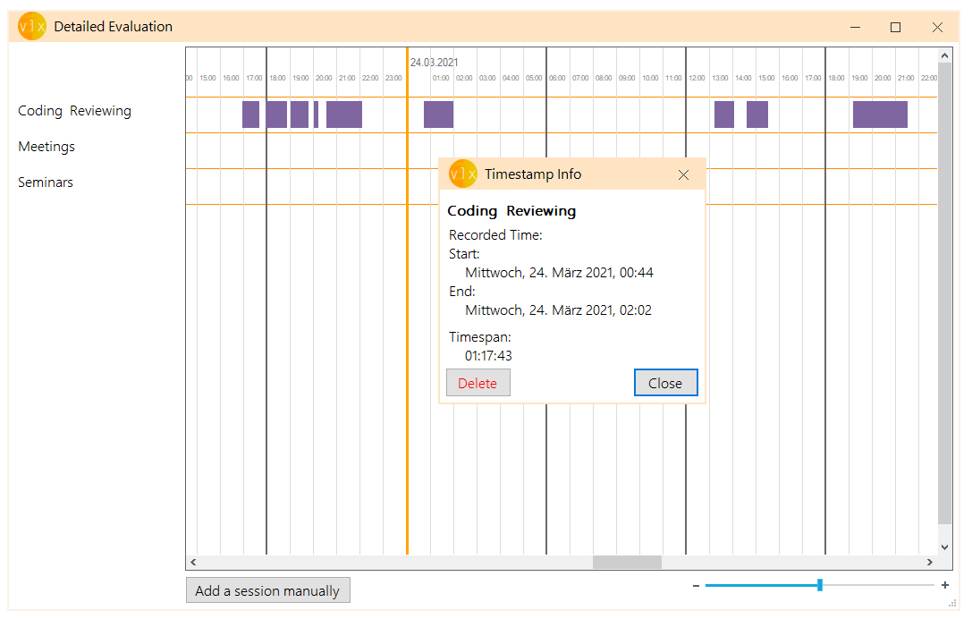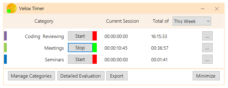 Stay organized and create as many categories as you need and get instant evaluations or timeline-visualisations for your work.