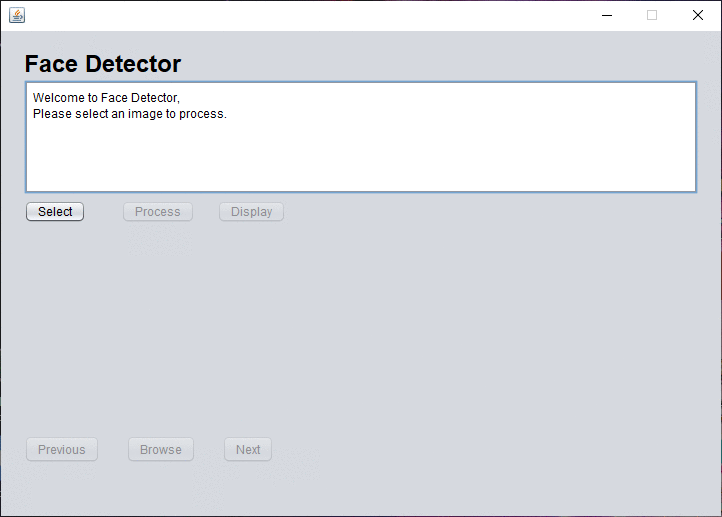 FaceDetector uses OpenCV library and loads it locally of course in the first place, then it uses CascadeClassifier, MatOfRect classes and also trained face detection model which is named as "haarcascade_frontalface_alt2.xml" to detect faces and process them. FaceDetector only selects image files, creates temporary files just in case if you want to browse or save them also deletes them on exit. You can also preview images without browsing or selecting each image or face especially.