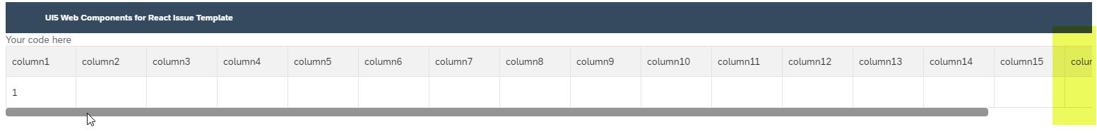 When a table has lots of columns with defined widths, the vertical scroll bar only appears if a user horizontally scrolls to the very right.