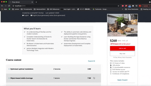 This web application is the front-end design for a collapsible bar, showing course overview for a course on a e-commerce type website that sells online courses.