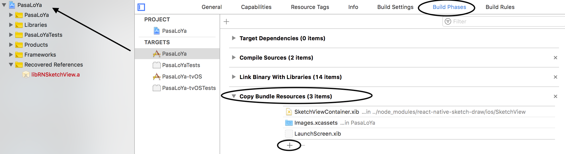 SketchDrawContainer.xibinto your application project. - Click on Copy Bundle Resources and add