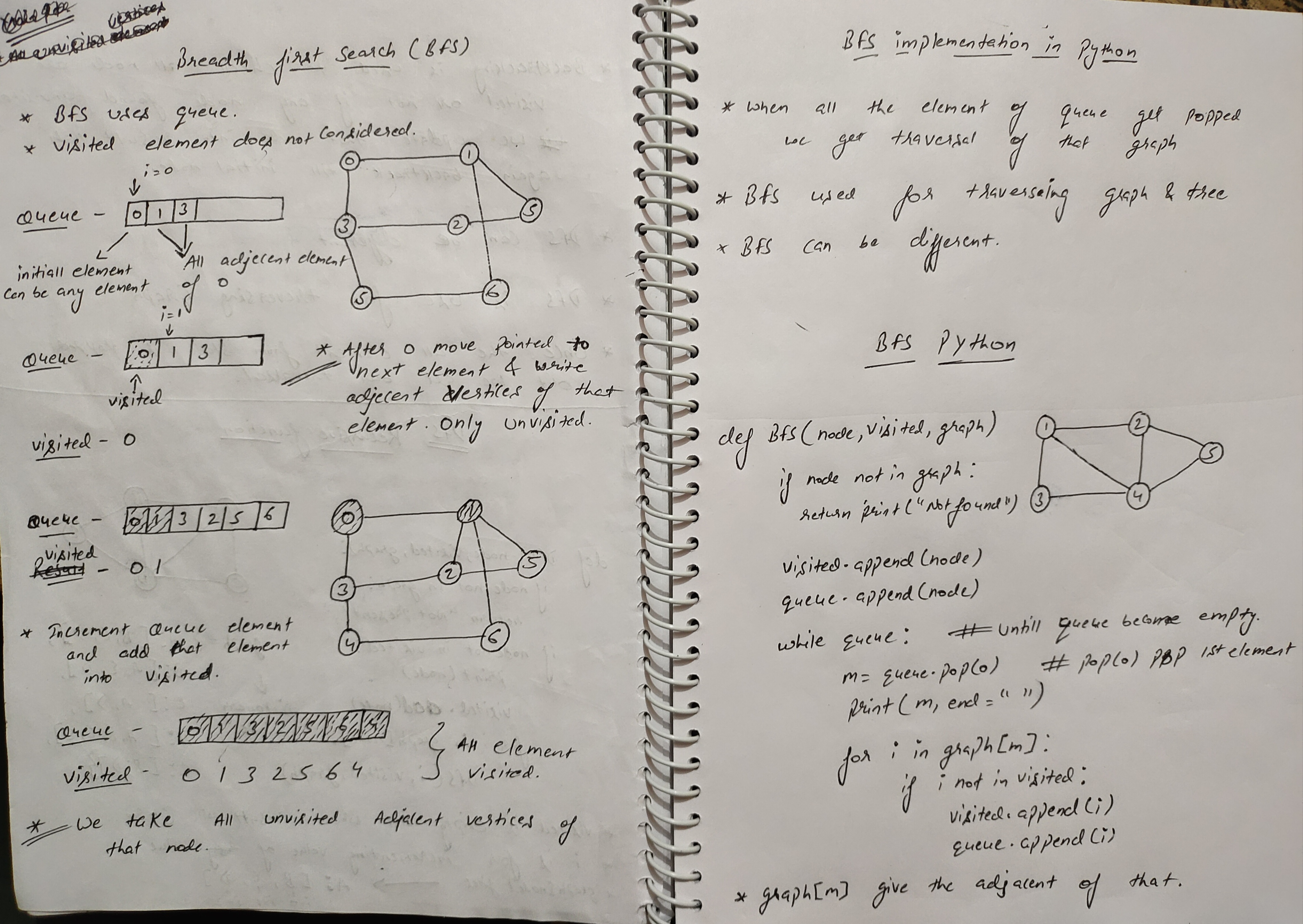 Breadth-First-Search-BFS- Breadth-first-search and Depth-first search in python are algorithms used to traverse(Visiting each node) a graph or a tree. DFS Python Implementation Hand Written Notes :)