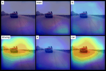 $ python run_s2vt.py --dataset {MSR-VTT|Flickr30k} --test --checkpoint {number}After you got the model which was trained to produce captions for MSR-VTT dataset, you can get video with saliency visualization similar to those in the beginning of the readme: