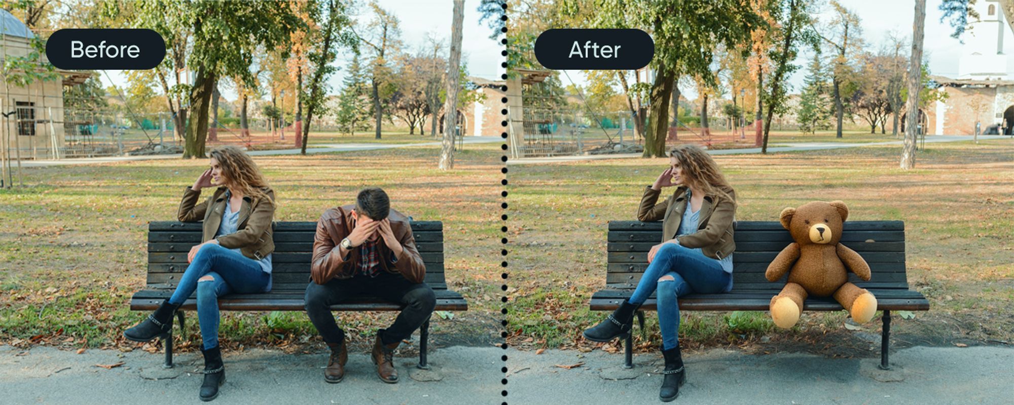 `woman sitting next to a teddy bear`, // Prompt text
