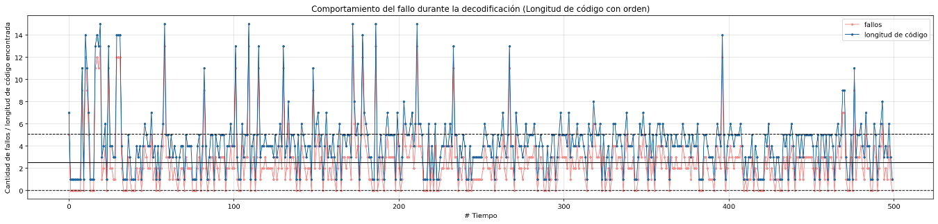 Failure behavior during decoding sorted by lenght codes